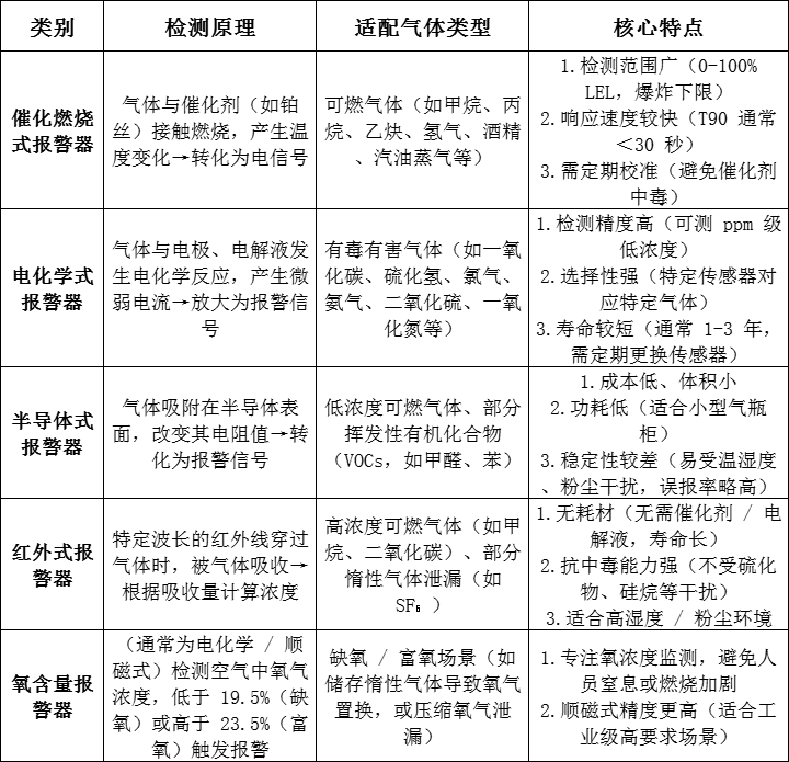 一、按「檢測原理」分類(核心分類維度,決定適配氣體類型)