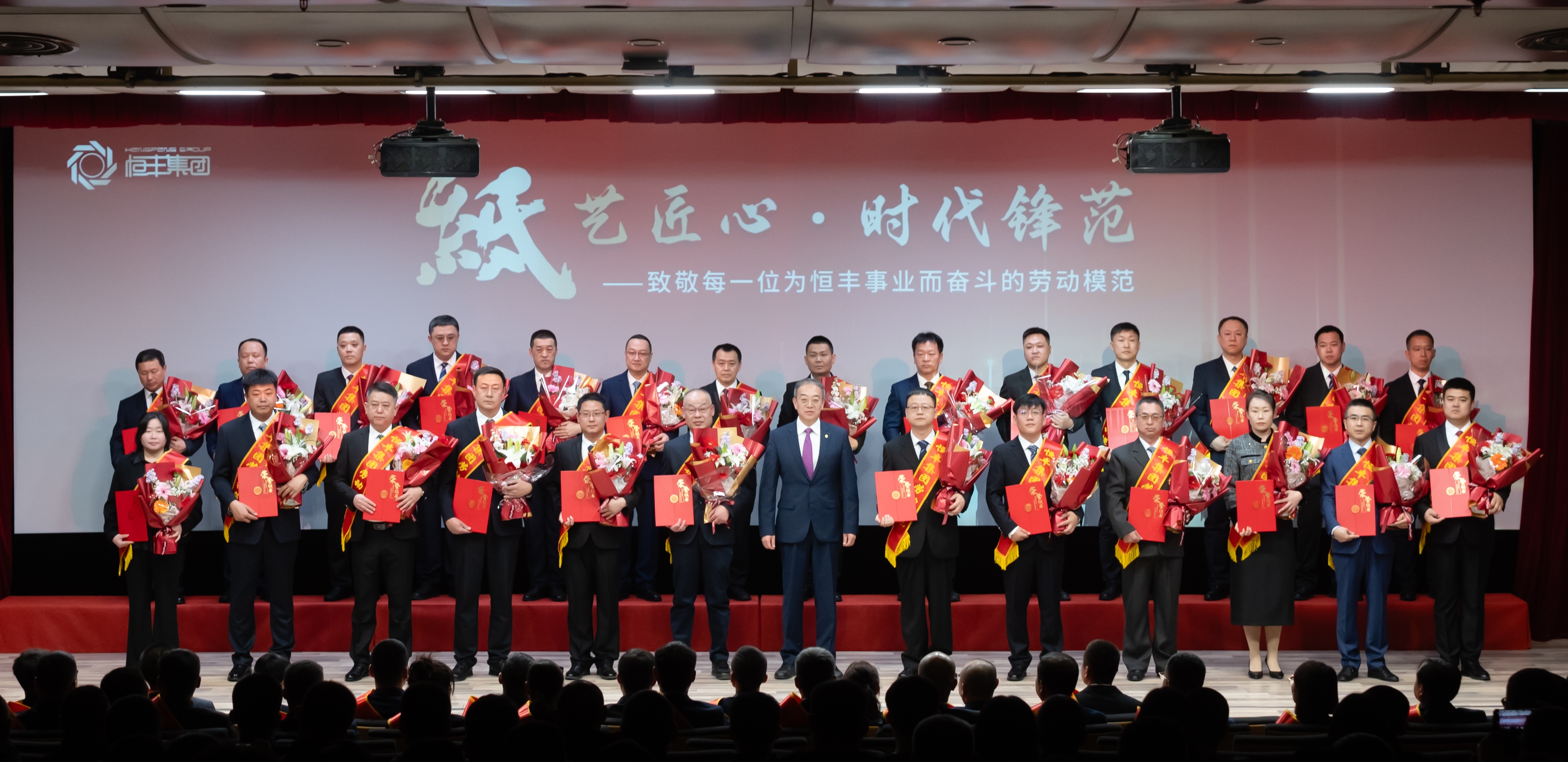 頒獎儀式上,恒豐集團黨委書記李迎春為27名獲得2022—2024年度勞動模范殊榮的員工頒獎。