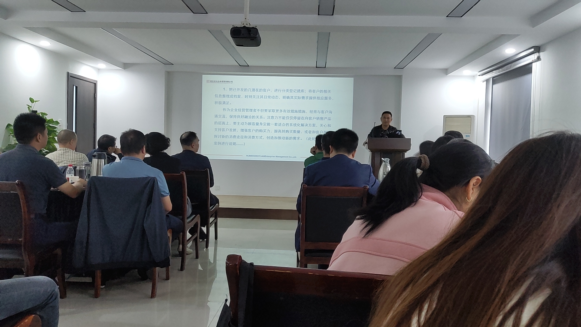 閱讀次數(shù):1085 發(fā)布時間:2023年09月23日2023年9月23日,東元企業(yè)管理公司組織《客戶維護與市場拓展》課題分享活動。公司董事長侯修煉作為主講之一登臺分享,公司全體管理人員在臺下認真聆聽學(xué)習(xí)。此次課題分享旨在提高企業(yè)員工業(yè)務(wù)知識學(xué)習(xí)能力,提高技術(shù)能力和管理水平。